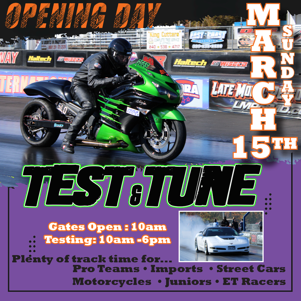 Stock, Pro Stock Motorcycle, Top Alcohol Dragster,