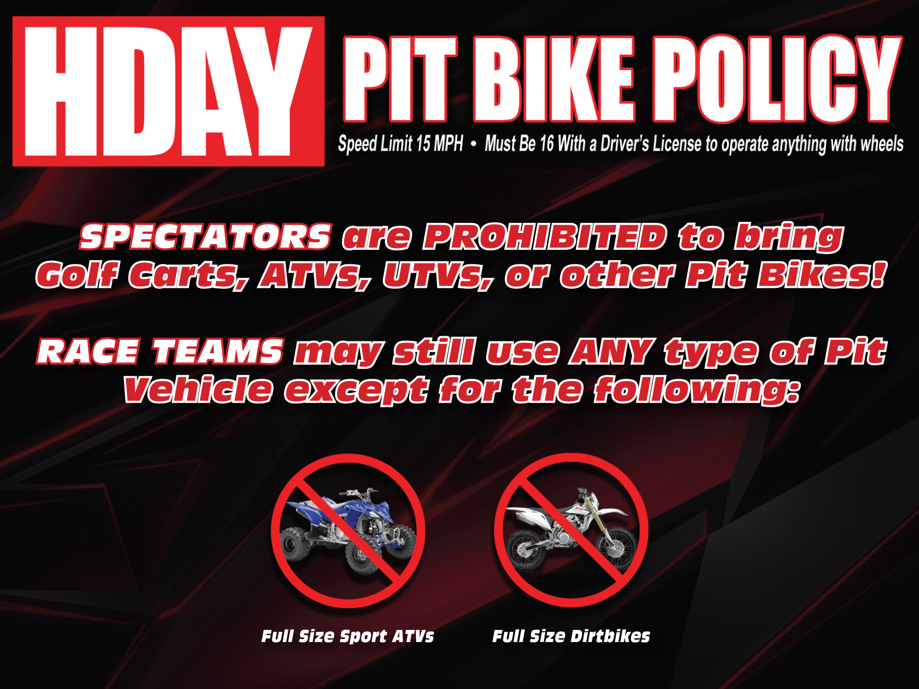 Pit Vehicles: *
